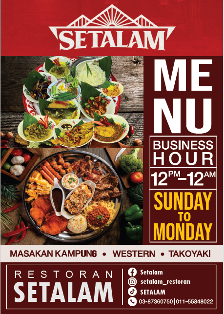Selamat Datang ke Restoran Setalam di Kajang Utama, Kajang, Selangor. Kami menyediakan Makanan Halal Hidangan istimewa masakan Melayu Tradisional, Western & Takoyaki berkonsepkan hidangan talam. Sesuai untuk seisi keluarga. Jika anda mencari tempat makan best di Kajang & sekitar, jemput datang ke Setalam Kajang Utama.